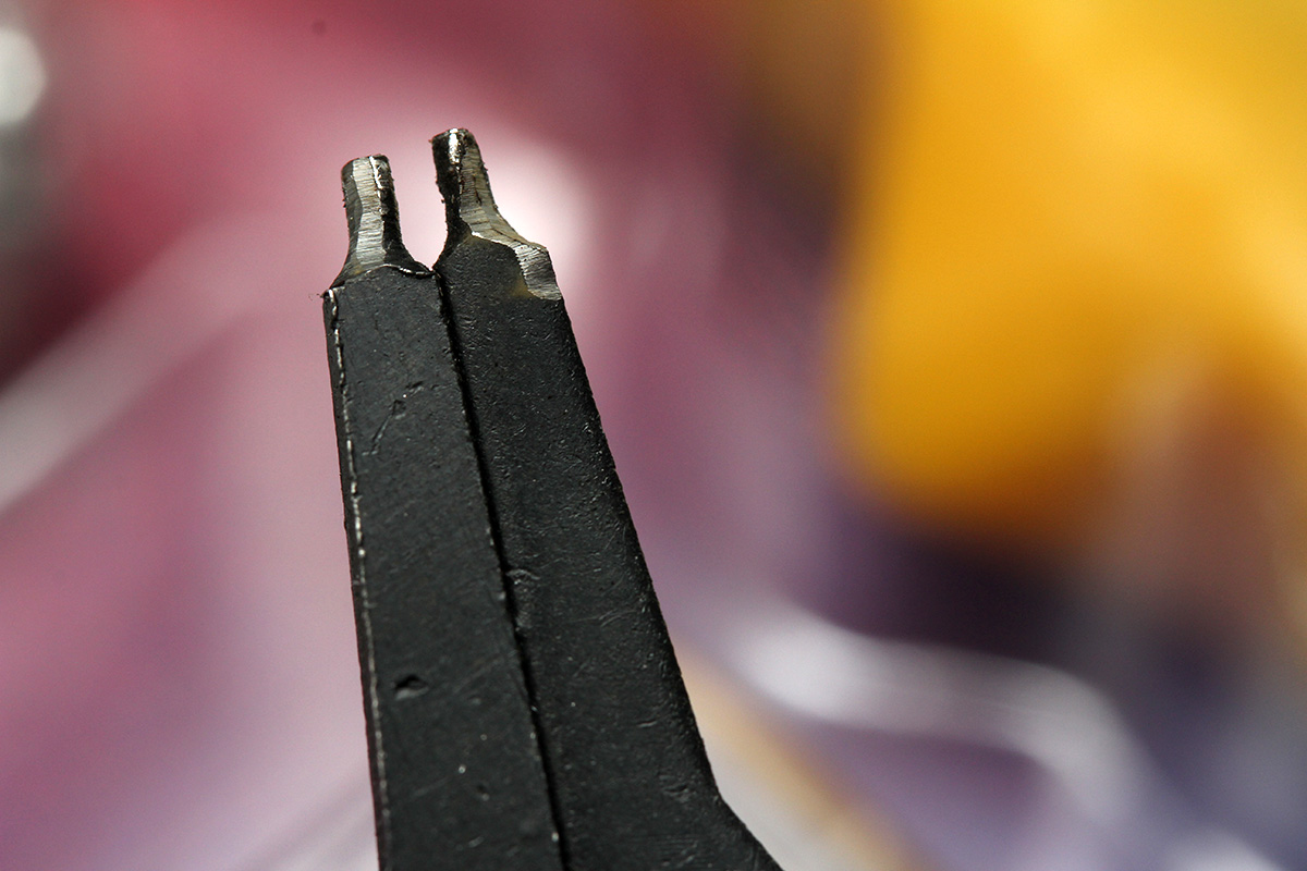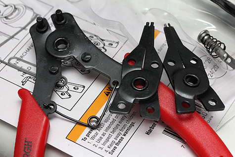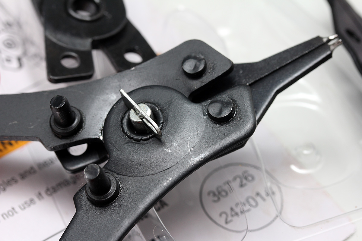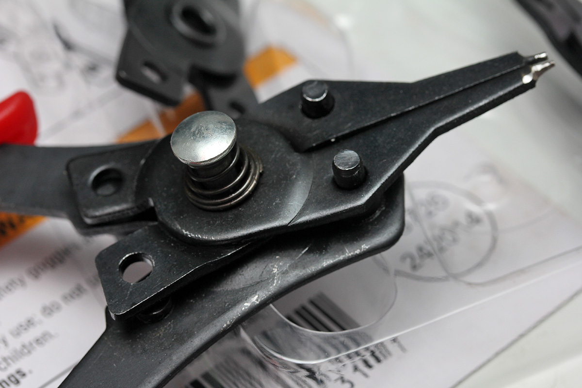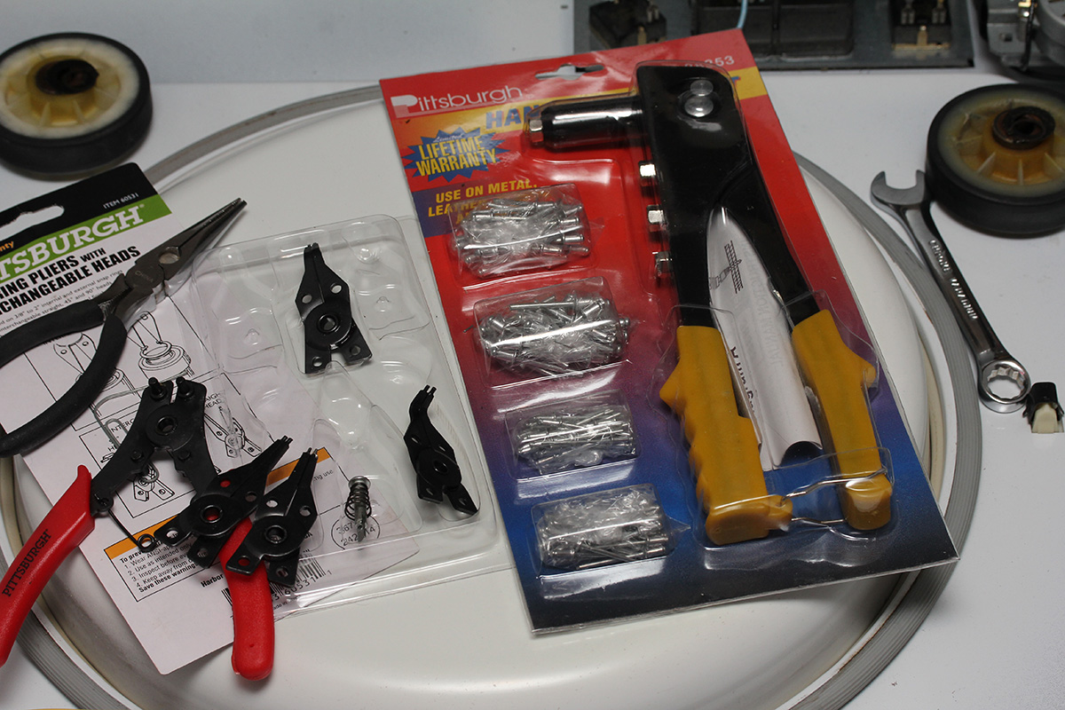 in the early evening i tried out the snap ring pliers on my dryer. unfortunately the pins on the pliers were too big to fit into the holes of the snap rings keeping the support rollers in place. i then tried to just simply pry off the snap rings using everything from an awl, to paperclips, to even toothpicks, but the tension required to release the rings was just too great. i decided to wait for inspiration to strike.