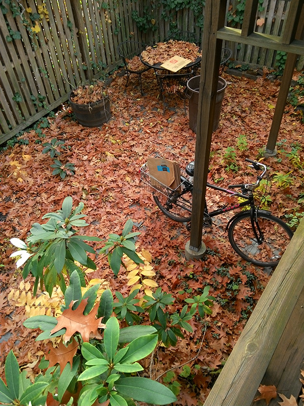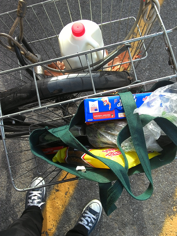 but this was the first measurable amount of snowfall. i biked to market basket to pick up a few grocery items (i had a hankering for cereal for some reason). when i came back, i realized i forgot to get some leave disposal bags so i went across the street to buy some from star market ($2.99 for 6). the market was surprisingly quiet on the eve of our first snowstorm (though honestly, "snowstorm" is a stretch). "did you hear it's going to snow tomorrow?" i whispered to the checkout lady. she said she already put her snow tires on.
