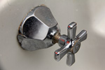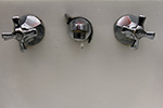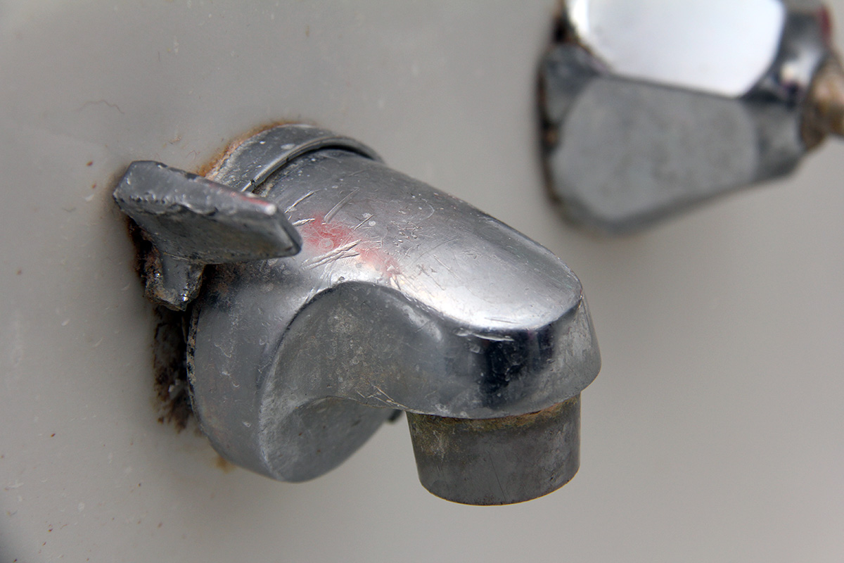 in belmont i checked out the shelf-back faucet fixtures my parents have on their bathroom sink, circa mid-20th century. the faucet's been leaking and we can either repair it or replace it. later when my father came home from the cafe we took time to see if we can disassemble the fixtures (yes we can, at least the hot water knob).