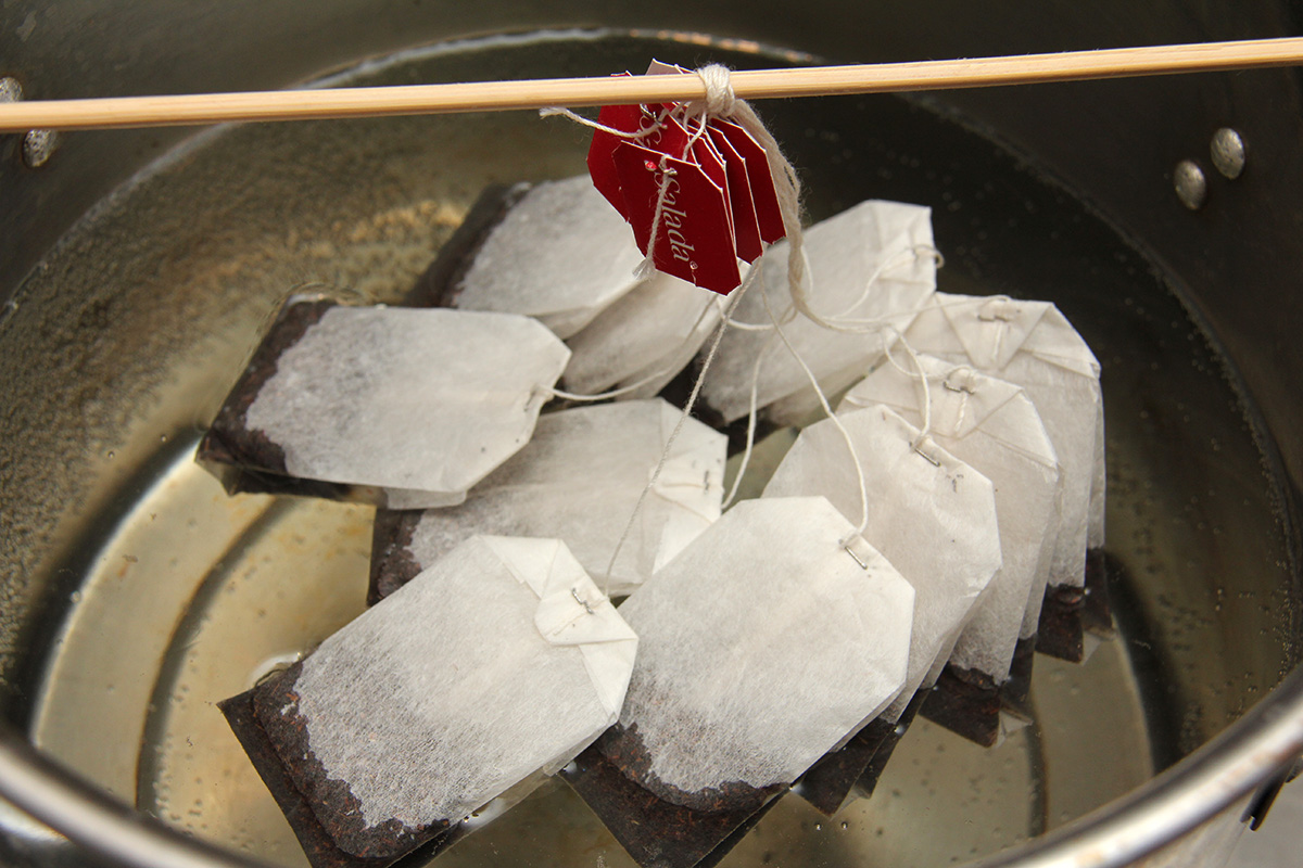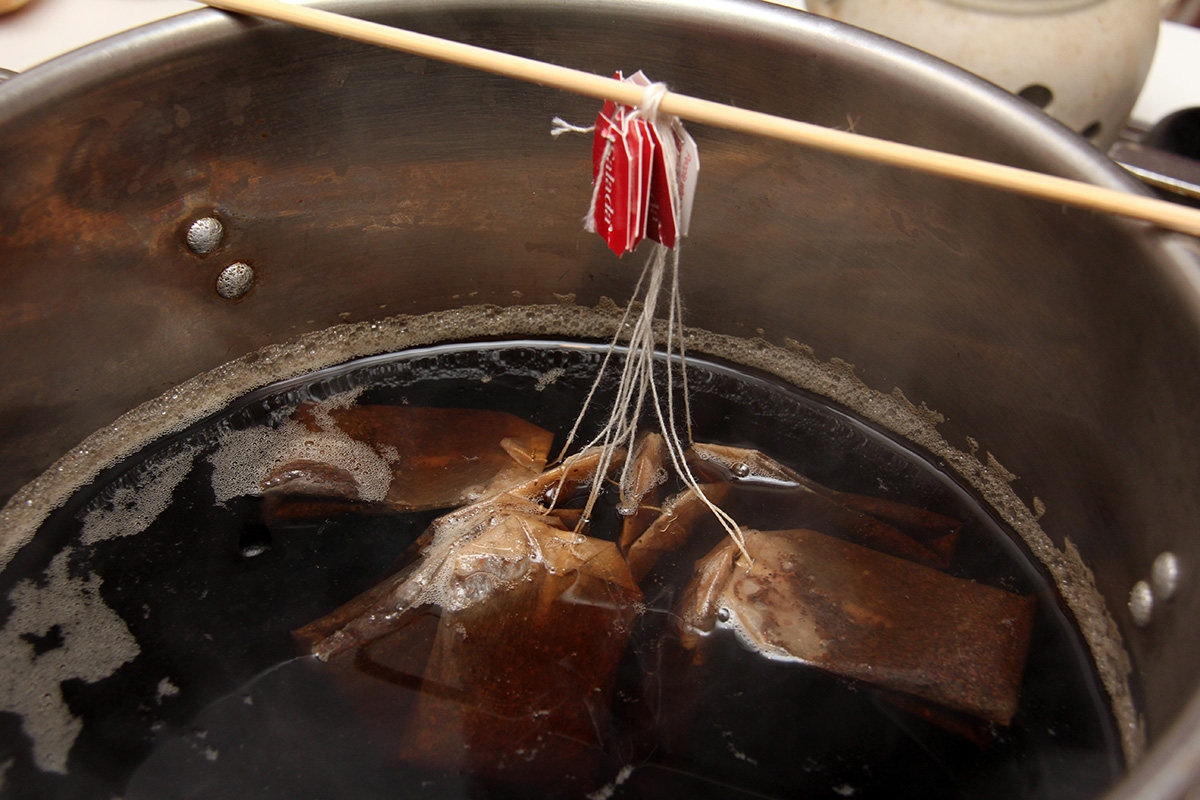 i poured in the sugar before the water started to boil, which in hindsight probably wasn't a good idea because the sugar then melted to the bottom of the stock pot while i was heating the water. i also started to soak the teabags while the water was just starting to boil. that probably also isn't a good idea, but the boiling water could rupture the bags and i'd have tea particles in the tea. next time steep the teabags after turning off the stove. i left the sweet tea to cool.