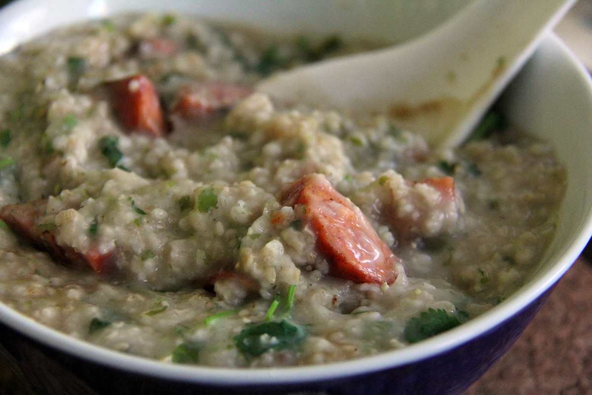for lunch i had some oatmeal but instead of chicken sausages i used some chorizo, which made for a spicier meal. chorizo made another appearance for dinner when i cooked up some beans and rice using an old box of instant rice (i tossed the flavor packet). can rice really expire? it smelled a little stale but seemed normal after i cooked it. into the mix was some frozen spinach and fresh cilantro. it tasted okay, a little plain but cheap and nutritious.