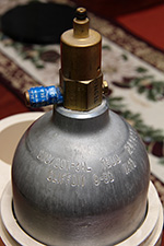 in the car was an small CO2 tank from a seltzer water making machine from the 1990's, the NSA sparkling water system. the tank itself is reusable (for my ongoing DIY CO2 planted aquarium and home seltzer water making experiments) but it uses a proprietary regular valve. the valve can be replaced but any respectable CO2 refill center would require the tank to be tested for safety before filling it up with pressured gas which may make buying a new tank a better idea. this one is a wee bit small anyway at 2.5 lbs (normally the smallest CO2 tank size is 5 lbs).
