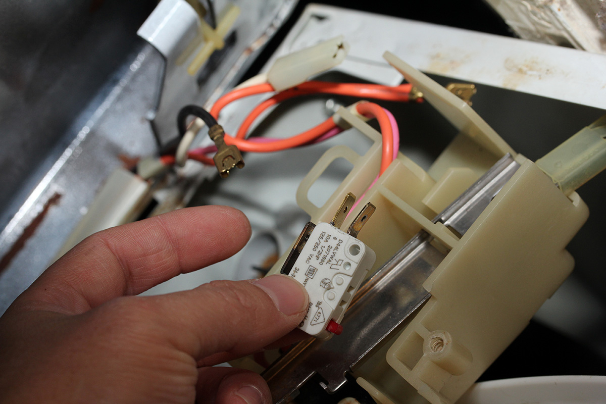 i sort of knew the part i wanted, but i opened up the washer anyway just to double check. the problem is inside the lid switch assembly. there are actually two switched inside: one to stop the water when the lid is open, the other is to activate the motor once the lid is closed. that latter switch was the one that's broken. i pulled it out of the assembly to check the model and to also make sure the switch itself is actually broken. xiaowu called it a cherry switch, and already tested it last time to determine it was indeed bad, but i ran it with a multimeter myself, and after following the instructions on the youtube video, i verified that there's no continuity when the switch is in the on position (so basically it's always off). i then went onto ebay and bought a new 207166 switch for $14 including free shipping. it said it'd arrive next monday, but i'm hoping maybe it'll get here saturday (shipping out of mechanicsburg, pennsylvania) so i can do some laundry over the weekend (it's been over a month since i last did laundry).