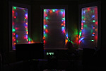maybe i should work from the kitchen table because working from the coffee table in the living room is sort of uncomfortable, and then i get little paper bits everywhere. i also installed some christmas lights in my living room windows.
