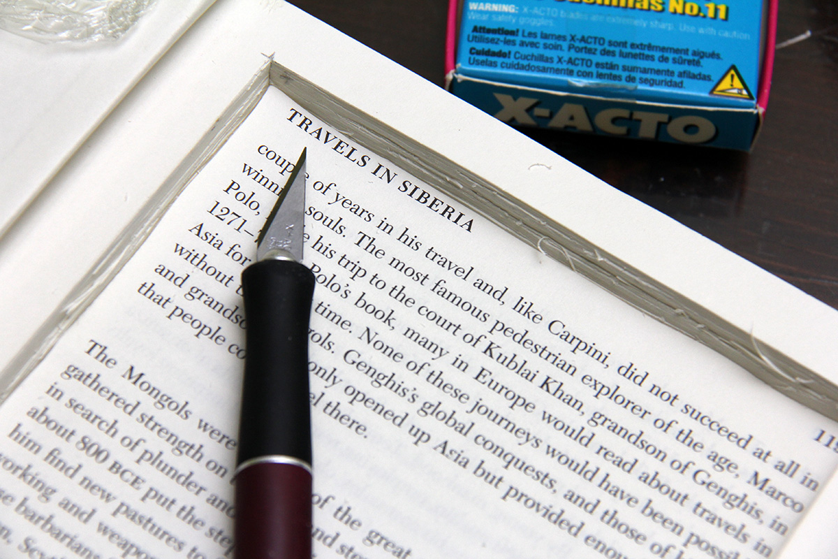 whenever i had some free time i'd work a little bit more on the hollow safe book i'm making for my sister (her birthday was yesterday, but it takes a while to hollow out a book).