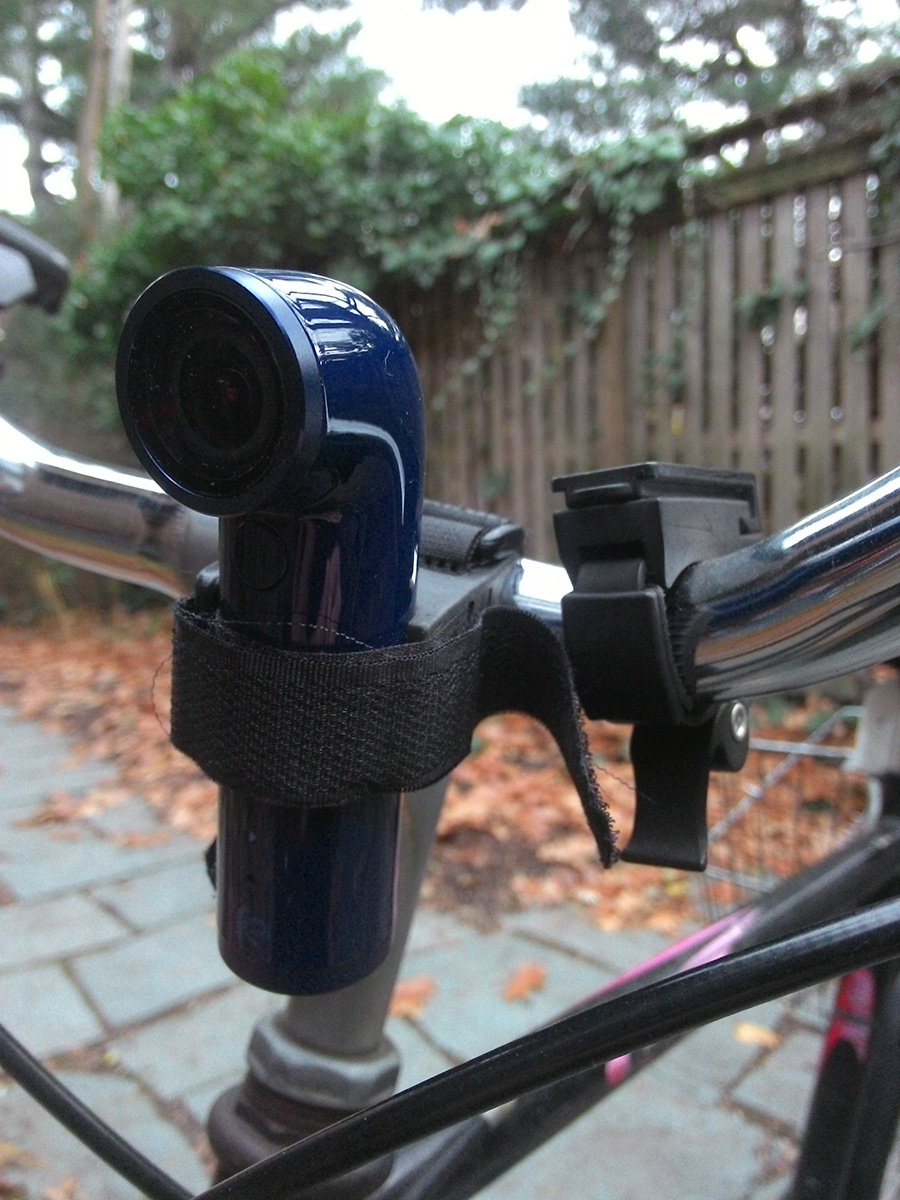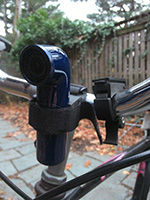 this gave me the perfect opportunity to test out the htc re camera attached to my bicycle. htc sells a special bicycle mount for the re camera at $19.99, but my $1.87 universal adjustable velcro/rubber flashlight bicycle mount worked just as well. mounted on the handlebar, it doesn't even look like a camera, more like a fancy bike light. since i don't have the app installed on my phone, shooting/filming blind was a little disconcerting. i wouldn't be able to see any of the footage until i got back home and download the data.