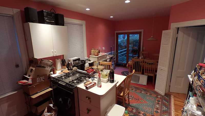 playing around with the infrared thermometer, i realized my jar of fermenting kombucha is located in a part of the kitchen where it's cold (against a side wall). so i improvised, pushed the fridge closer to the sink counter, giving me enough room to set the kombucha on a stool next to the other side of the fridge. why? because the coils behind the fridge actually makes it warmer, and the fridge is located in a central part of the house that never gets too cold. hopefully this will speed up the fermentation process.