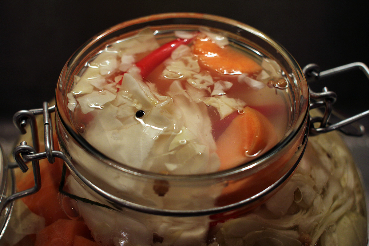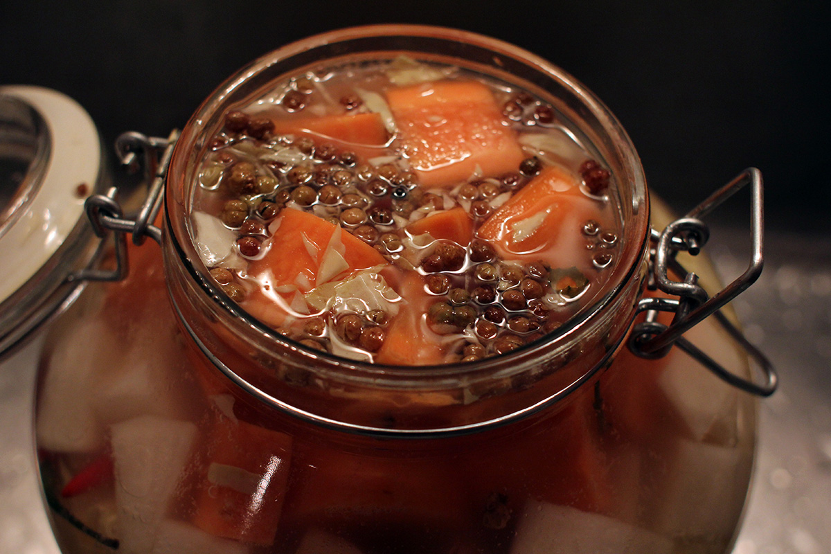 i went to go check my jars of fermenting paocai in the early evening and was horrified to realize that at least one of the jars was leaking from the built up of