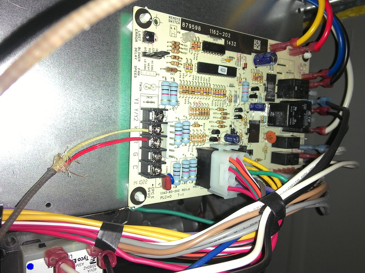 i was down in the basement investigating how my old thermostat cable is connected from the thermostat on the first floor down into the furnace. i noticed on the control board of the furnace that there are actual additional connectors for Y2, G, and C cables. if i go ahead and upgrade my thermostat cable to 5 cables instead of the current 2 cables, that means i'll be able to take advantage of these extra connections. i think at the very least i can switch on the furnace fan without turning on the heat, kind of like a poor man's central air conditioning during the summer months.