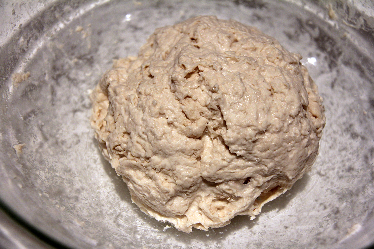 around 6:00 i felt like making some no knead bread so i went into the kitchen to whip up some bread dough: 3 cups of bread flour, 3/4 tsp of kosher salt, 1/2 tsp of yeast, and 1-3/4 cups of lukewarm water. recipe only called for 1/4 tsp of yeast but the yeast i have in the fridge is old so i decided to double the portion. and the recipe asked for 3/4 tbsp of salt but i misread the instruction and only added 3/4 tsp. finally, recipe said only 1-1/2 cups of water, but the dough looked awfully dry so i added another 1/4 cup of water. after i mixed everything, i covered it up with plastic wrap and put it on top of my fridge (the warmest spot in the house at around 68°F) to ferment.