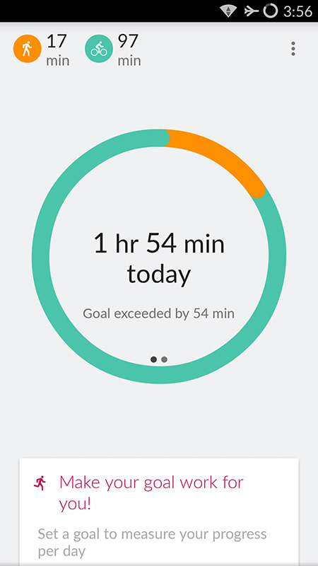 i've been monitoring my activity status ever since i activated my google fit a week ago. the thing i only realized a few days ago is that somehow it knows when i'm biking as well, something my withings pulse activity monitor can't seem to do (it only knows if i'm walking or running). bike monitoring isn't the most accurate though, because sometimes in the course of my biking i might be gliding, and i don't think those times get recorded correctly. but today i finally managed to break the default activity goal of 1 hour. the app doesn't seem to differentiate whether 1 minute of walking is equal to 1 minute of biking or 1 minute of running; the apps sees all activity time as the same. i'm curious to get back into running again just to see if the app can accurately sense my running activity.