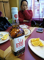 after dropping off my groceries at home, i biked to the cafe to deliver the whiskey to my mother. my godmother was there as well. i brought back some large garlic chive dumplings for dinner.