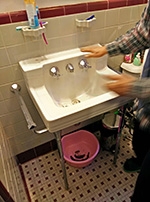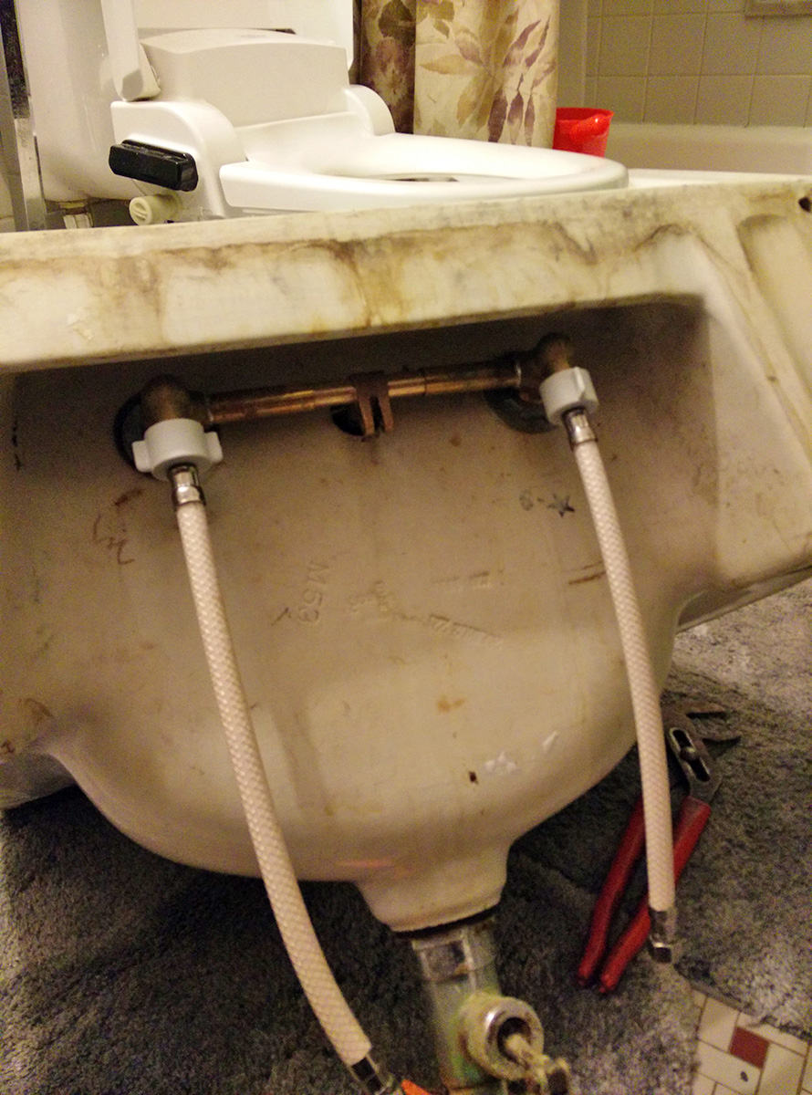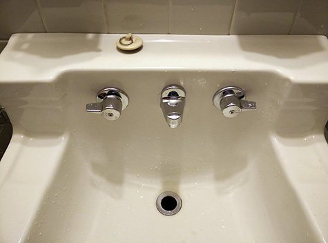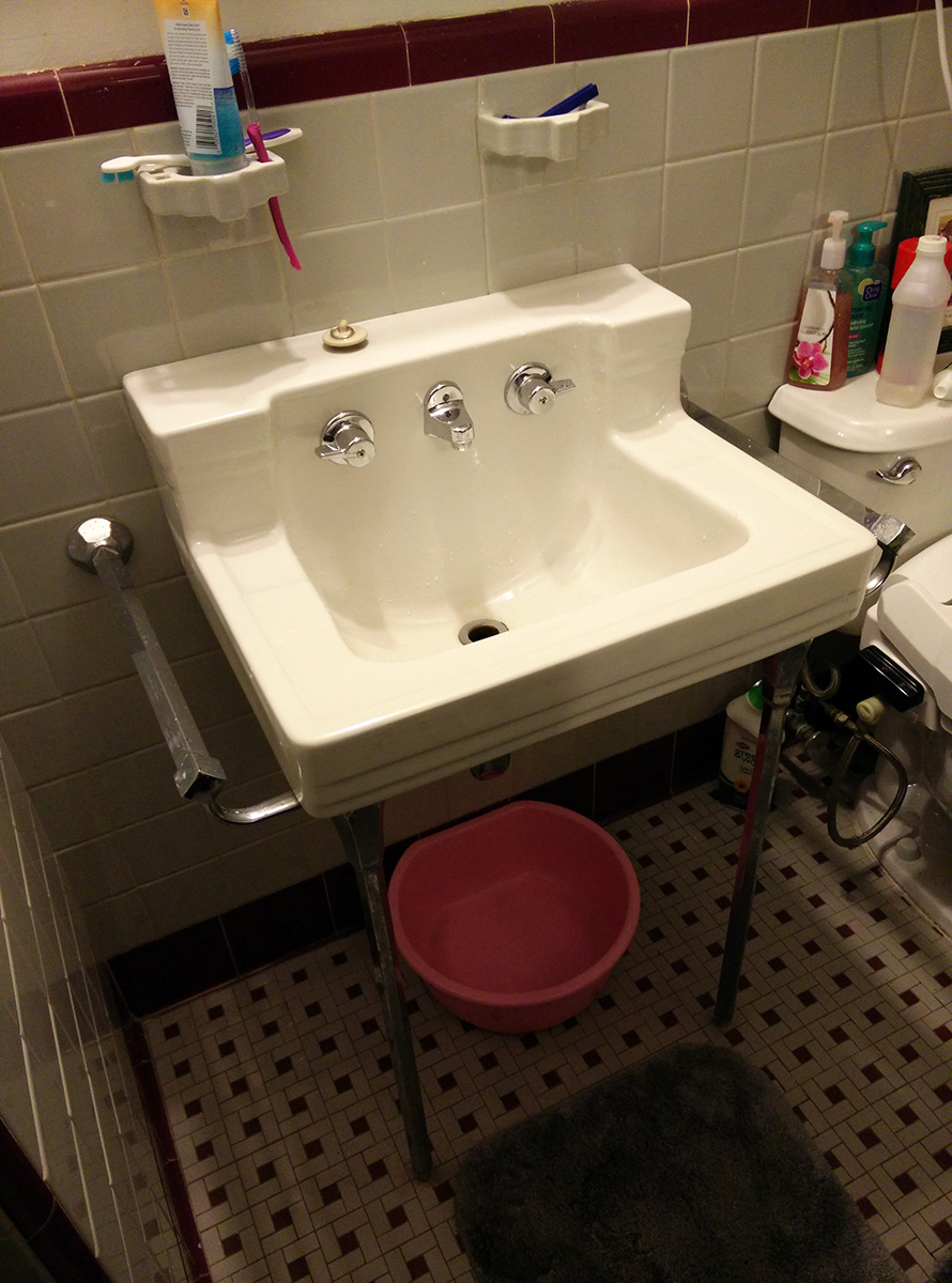 spent the afternoon into the early evening helping my father replace the old fixtures on the antique ledge-back bathroom sink. we even went to home depot after dinner to look for parts (large washers) - not realizing they close early today at 7:00. but the faucet works better than ever now, with the only caveat being we have to adjust the knobs a little bit (something to do with disaligned washers), so sometime in the near future we'll need to pull out the sink again to make the fix.