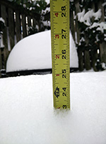 one thing i wanted to do was to take a total snowfall measurement. but with the snow being so light and the winds create snow drifts, it was hard to know which snow-covered area of the backyard was the most accurate spot to measure. i found an area that seemed to be right in the middle - not too low, not too high. the measurement in my cambridge backyard: 23in. i heard the official snowfall total for boston was 24.6in, the 6th largest snowstorm ever.