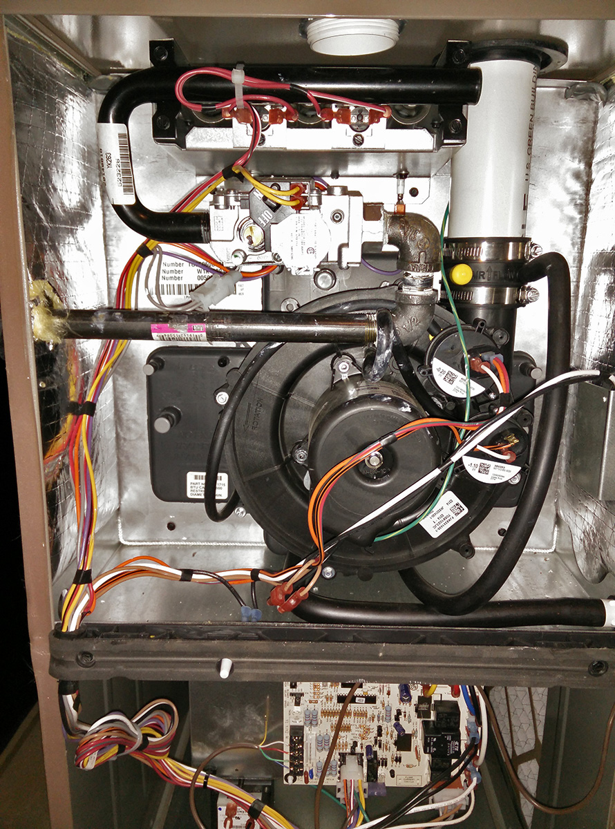 on the next heat cycle, i waited anxiously to see what would happen. after a few minutes of heating, cold air started blowing out. so the new filter had no effect. i went back into the basement (so much back and forth since last night, there was a trail of snowy footprints to match the fresh snow that was beginning to fall). originally i wanted to remove the flame sensor to clean it, but what are the odds of a barely 3-month old furnace with a busted flame sensor? besides, it was kind of a challenge to remove, so i decided against it. i tried a test where i cranked the heat up by 10 degrees to see how the furnace would perform. after a few minutes, i saw the furnace thumping like it's trying to draw air, then i noticed the burners went out because the diagnostic light was flashing red 8 again. whatever the problem, the thumping seemed to be related. at that point i gave up, figured i'd let the professional handle it.