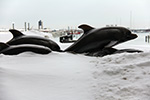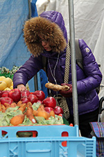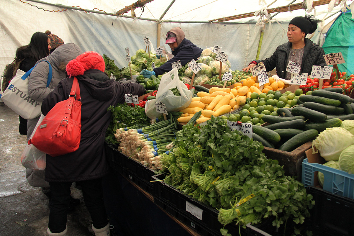 it was a cold day (15 degrees) but wasn't too bad. i warmed up from the walking and had my two jackets unzipped, without a hat or gloves. there were snow piles everywhere, not much you can do about that. maybe because of all the snow, there was sparse pickings at haymarket. less than half the vendors were there, and there wasn't much variety in terms of selection. many had erected tents around their stands, heated inside with diesel generators. can't just leave the produce laying around, they're liable to freeze in this temperature.