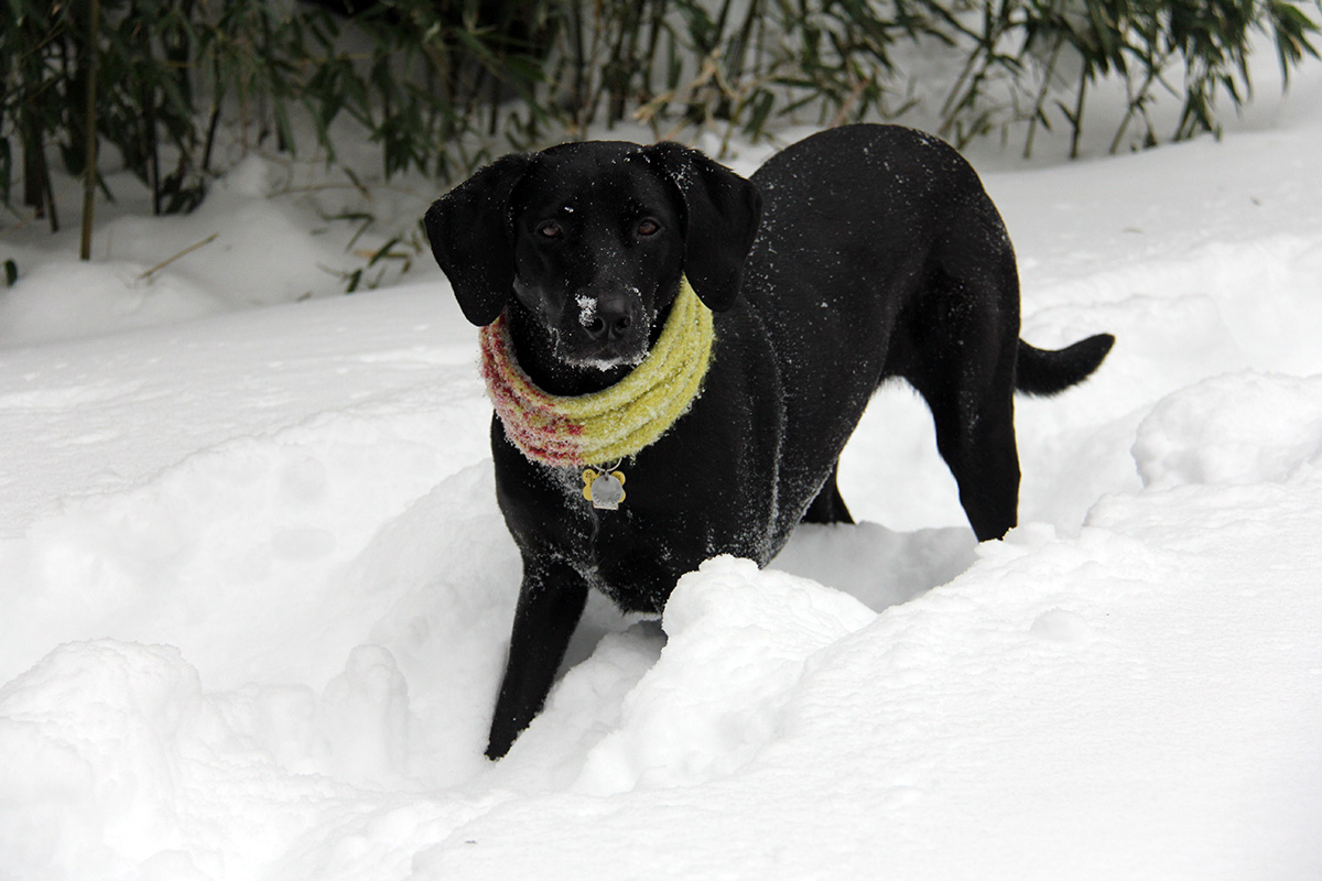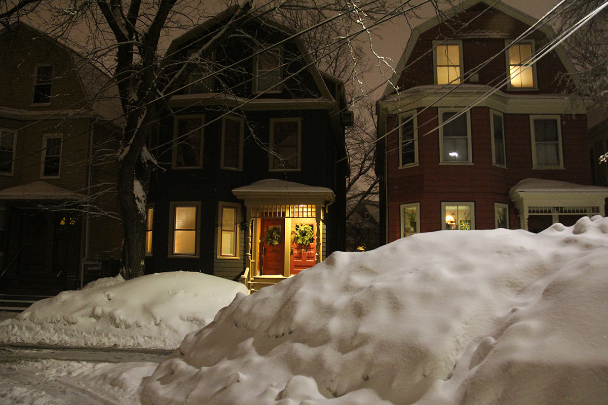 while my father cleared the snow from the front door awning, i carved out a new path from the sidewalk snowbank. i also took hailey out into the backyard to toss some snow around but we came inside when she began to wheeze. around 2pm it started to snow again, a persistent flurry that it made hard to see.