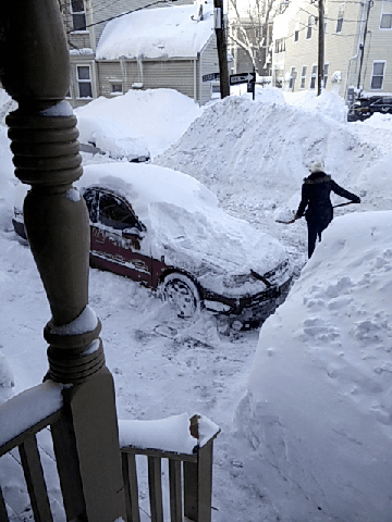 watching the news, i learned that this is the 3rd snowiest winter in boston history, with the total right now at 95.7 inches. at the rate we're going, it's only a matter of time before we break the all-time snowiest record. 2nd snowiest is 96.3 inches for the winter of 1993-1994, with the number one snowiest at 107.6 inches for the winter of 1995-1996. we need another foot and we break it: forecast calls for a bit of snow on tuesday, and something more substantial next sunday. that will make it the 5th weekend of consecutive snowstorms.