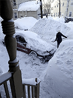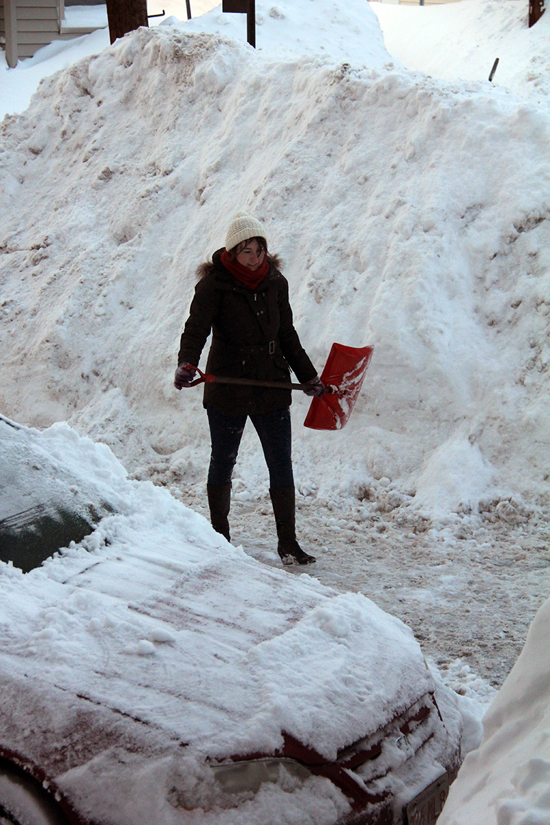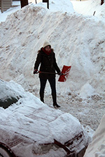 from bed i could hear my upstairs neighbor leaving the house this morning. when i finally woke up, i noticed the sidewalk was shoveled. he also tried to do the backyard, but stopped before he could clear the front path as there was no place to put the snow. i got dressed and went out to continue the work he left behind. snow from the front path goes out to the snow bank on the sidewalk; the rest goes onto the giant snow piles in the backyard. there was so much snow that my piles were beginning to avalanche from the excess weight. later i saw paul outside again digging out their cars. steve naturally was nowhere to be seen. afterwards i also saw paul clearing our backyard deck, including mine as well.