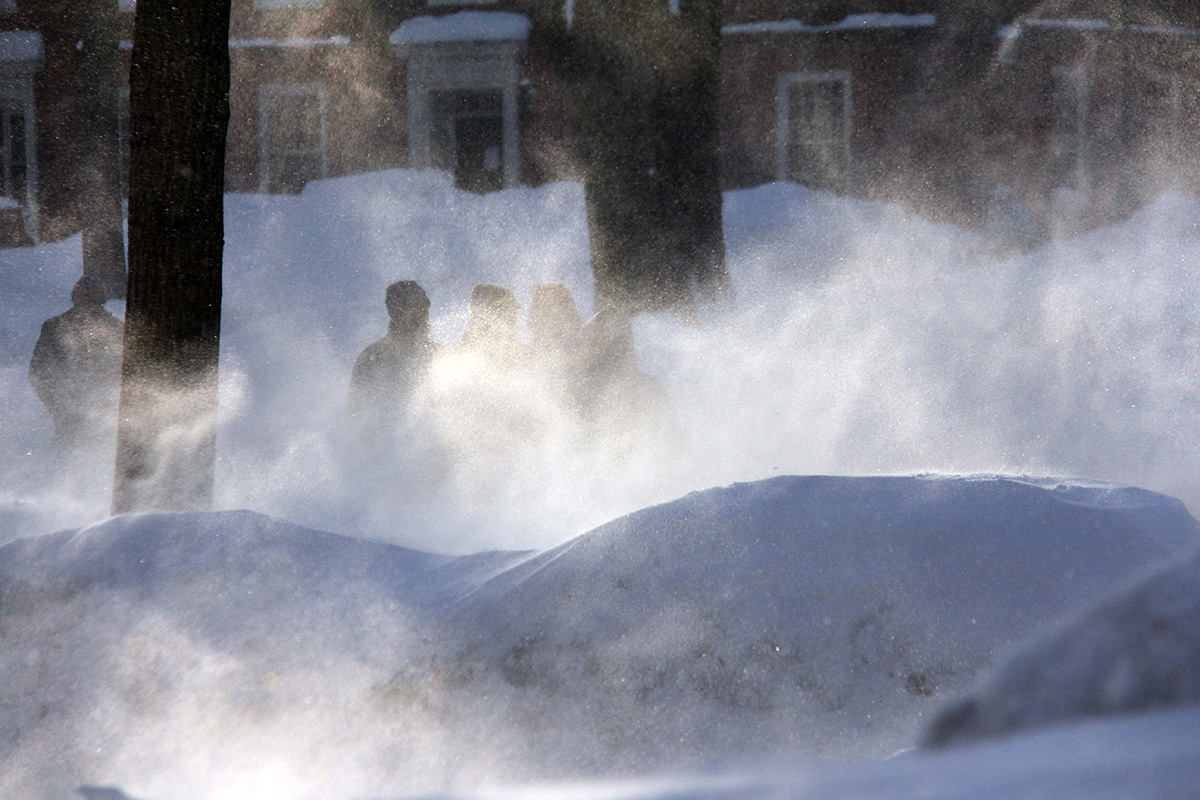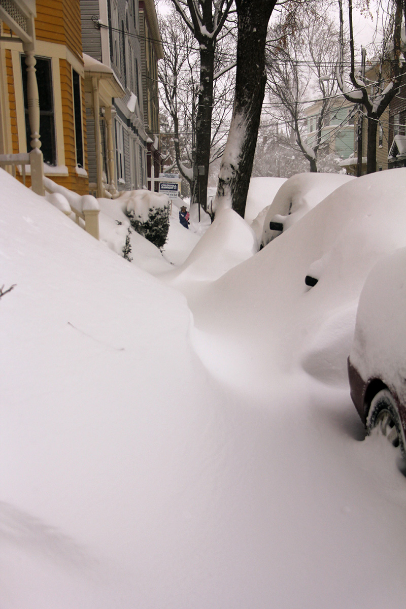 the snow had pretty much stopped by mid-morning. the official snowfall count is somewhere around 16 inches. i wanted to go outside and take a tour of the neighborhood, but the howling winds were ferocious, strong enough that it shook the trees and blew the dry dust-like snow into blinding drifts. nevertheless, i wanted to see firsthand the results of this historical snow event, so i got dressed and left the house around 3:00 in the direction of harvard square.