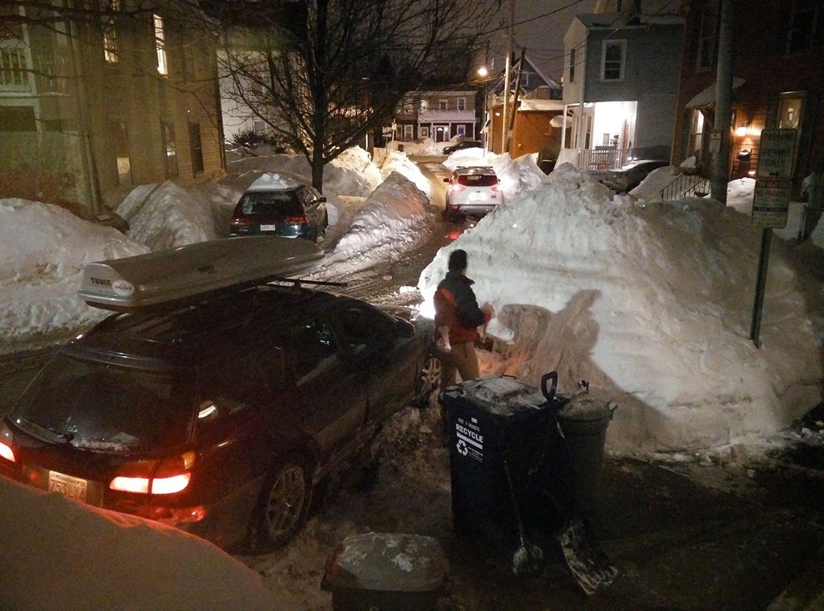 it snowed a little bit more today; i think in cambridge we got maybe an inch at most. whatever amount that did fall set the record as the second snowiest winter in boston history with more snow expected throughout the week and into the weekend. i walked down to market basket to get from groceries in the afternoon then spent an hour digging out the filled parking spot in front of my house.