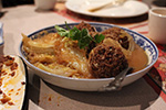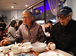 my father left at 5:30 to go feed hailey and bring my grand uncle to the restaurant. my mother and i left the house by 5:40, walking down to golden garden on concord avenue. my mother thought it was crazy that we'd walk there, but it was close enough and it meant we didn't have to take the other car out of the garage. it began to snow and my mother wanted to go back to the house to grab an umbrella, but it was cold flurry that didn't stick to anything. walking was a challenge because certain stretches of sidewalks weren't plowed, making them impossible to walk through. others were cleared, but with weird exit points which meant walking farther than normal just to escape the wall of snow. there were also times when we had to walk in the streets, which are narrow as it is already without adding pedestrian traffic as well. we had a 6:00 reservation, but since there was hardly any customers inside, we decided to wait outside for my father to show up with my grand uncle. my sister arrived at the same time as well (via car, getting off from work).