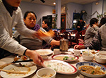 tonight is actually chinese new year's eve. it's sort of sad that since this holiday isn't really celebrated in the US, chinese restaurants are usually opened on chinese new year. although you wouldn't know it from the english menu, golden garden actually specializes in northeastern chinese cuisine. as the evening wore on, several large parties arrived (4-6 people), all chinese, all speaking with northeastern accents. they were also all young and rich, judging from their clothes and the slew of expensive cars parked outside (pink audi, mercedes SUV, lotus sports car), the sons and daughters of wealthy chinese nationals who can afford to send their children overseas for education.