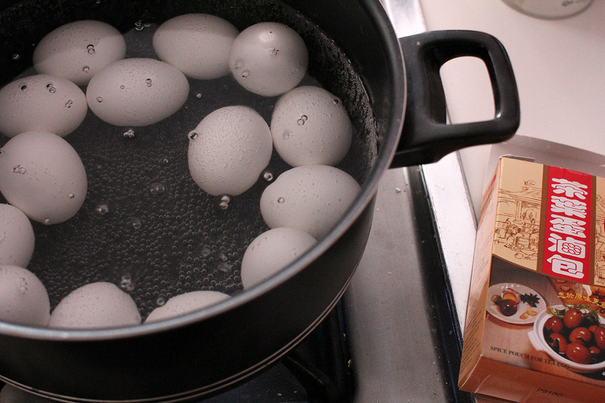 back at home, i consulted 4 different online recipes (1 2 3 4) and even called my mother. each one had a different take on how to make proper chinese tea eggs. i made tea eggs before, back in september 2012. i used a slow cooker and cooked the eggs for 24 hours. one thing i learned was slow cooking didn't really improve the flavor; in fact, cooking the eggs for such a long time made them expand and not that great to eat. simple steeping was just as effective. this time around, i'm going with the easier approach.