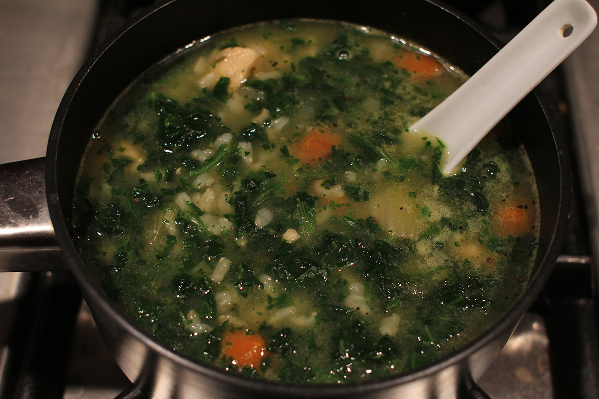 for dinner, i heated up a can of campbell chicken rice soup. this was the perfect opportunity to add a handful of frozen spinach to make it somewhat healthier. the spinach can get a little slimy, next time i'll try adding some kale instead. maybe next week i'll make my own soup.