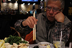 i could've finished the restaurant's whole supply of lamb and tripe. i accidentally ordered pork intestines, which is not the same as chongqing duck intestines (which i can't find anywhere). we ordered the mala (spicy) broth, but you could hardly call it spicy (once again, i might be unfairly comparing it to chongqing hot pot, where the spicy broth is blood red and covered in additional dried hot peppers and peppercorns). my 2nd uncle was complaining that they didn't have any fruit on the menu (that seemed to be a deal breaker for him for some reason).