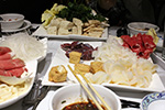 half of the place was a restaurant, the other half an alcohol-serving live entertainment joint. from where we sat we could also see a small sushi bar. the decor leaned on the upscale, with pretty red lanterns hanging overhead. apparently the way they do hot pot buffet is you order what you want and they bring it out to you. on the order form - written in pencil - was a reminder not to waste food and that there was a 2 hour limit. they had an okay selection, but i was naturally biased because i was comparing it to chongqing hot pot (which has no comparison). the fact that my sister came was a surprise, because she hardly ever participates in any family outings these days. she asked one of the asian waitresses if they had a gluten-free hot pot, the waitress told her they didn't, but they did have a special gluten-free asian menu. so my sister ended up ordering from that (which combined actually cost more than the per-person price of the hot pot).