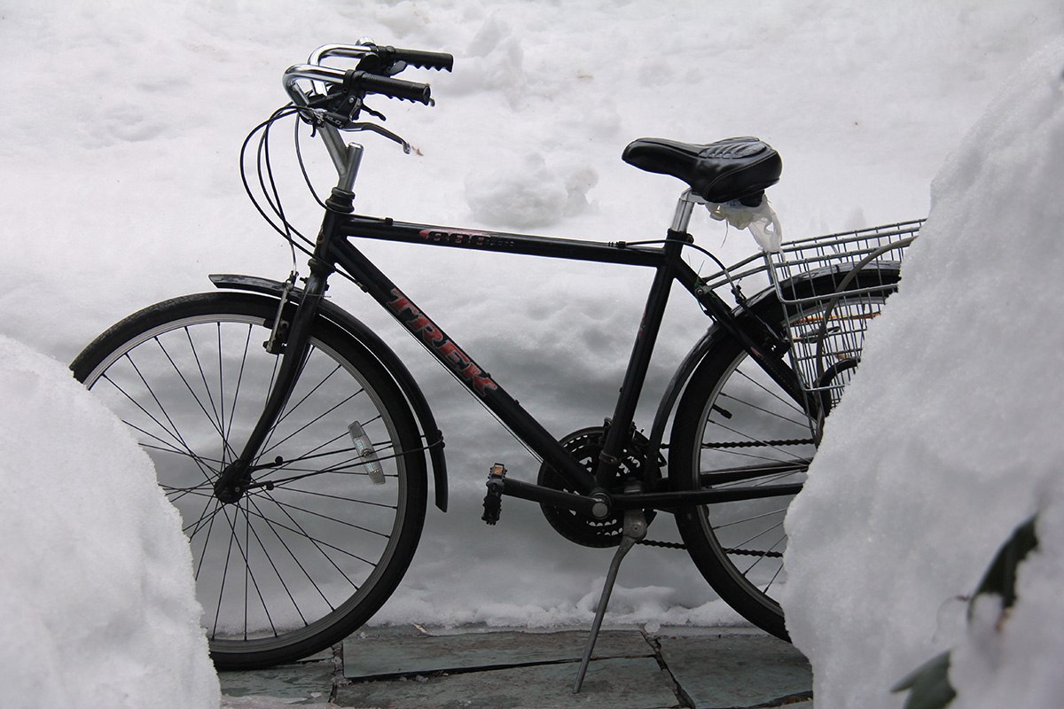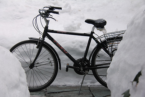all these weeks of getting rides back and forth from belmont, i've been keep a close eye on the road conditions. today was an optimal day to get back to bicycling: low traffic density, enough snowmelt to reveal bike lanes on most major roads, and warmish weather (40's).