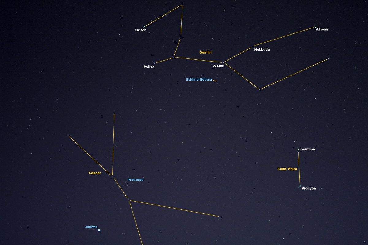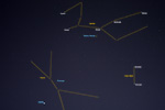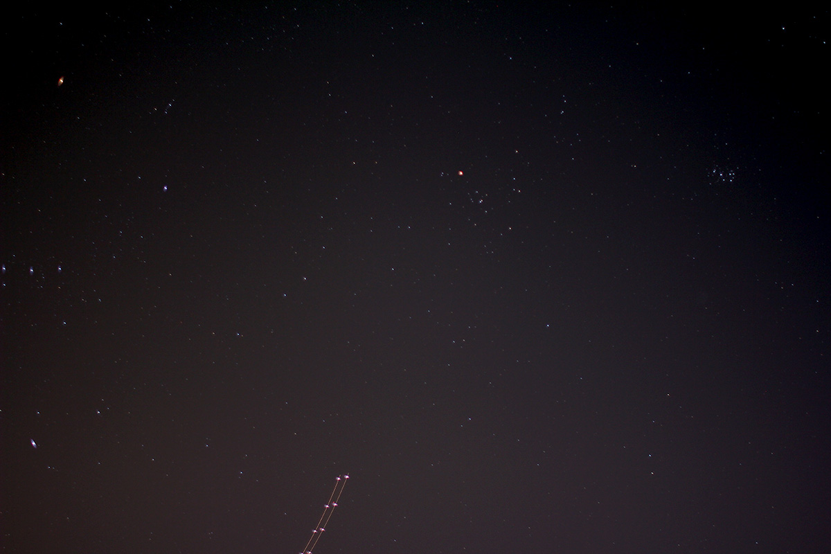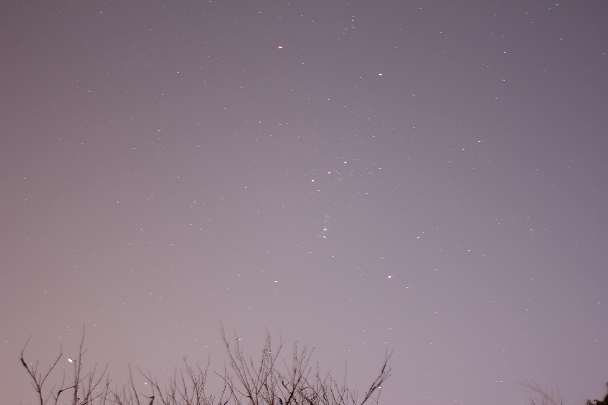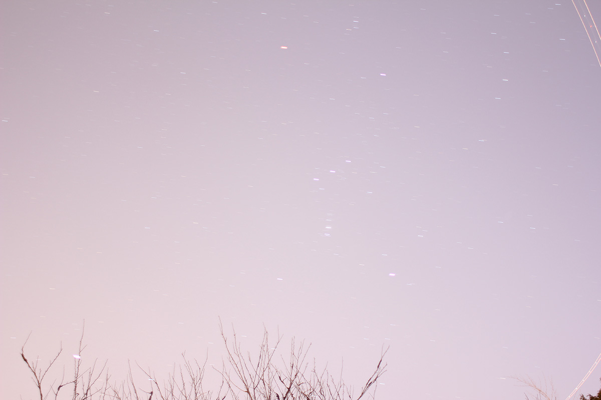 after some fried chicken for dinner, i waited for sunset (around 6:45pm now) before going out into the snowy backyard to take some star photos with my dSLR and tripod. i was trying to find the best setting. a 15 second exposure seems to be the limit, otherwise stars begin to have trails. everything was taken with ISO 100 and using a remote control trigger. a few photos at the start were taken at f/8, before i pushed it up to f/1.8 for maximum light capture. actually too much light capture, because the sky started to look white instead of dark. it was nice to get back into astronomy again, even if it wasn't usually my big telescope. i didn't take out a pair of binoculars to get a better look at jupiter, where i managed to see it as a big white ball with its 4 moons.