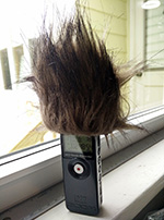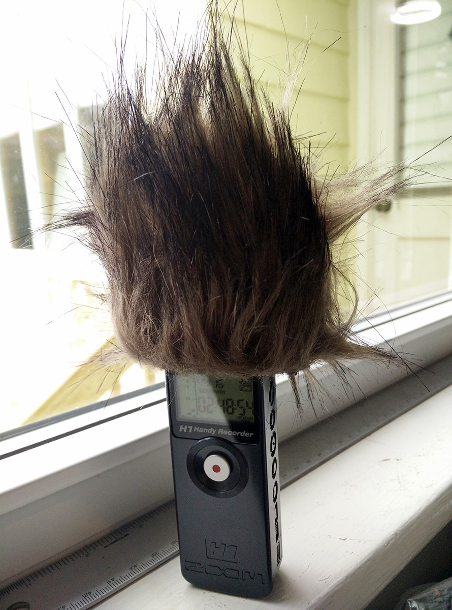 i went out and tested the wind screen. it's nothing to look at, but it does protect the zoom H1 microphones from wind noise feedback. i wonder if the fur material can be a bit shorter. i have plenty of fake fur left, i can always sew a few more using different designs (like a foam filler, or a fancy felt lining).