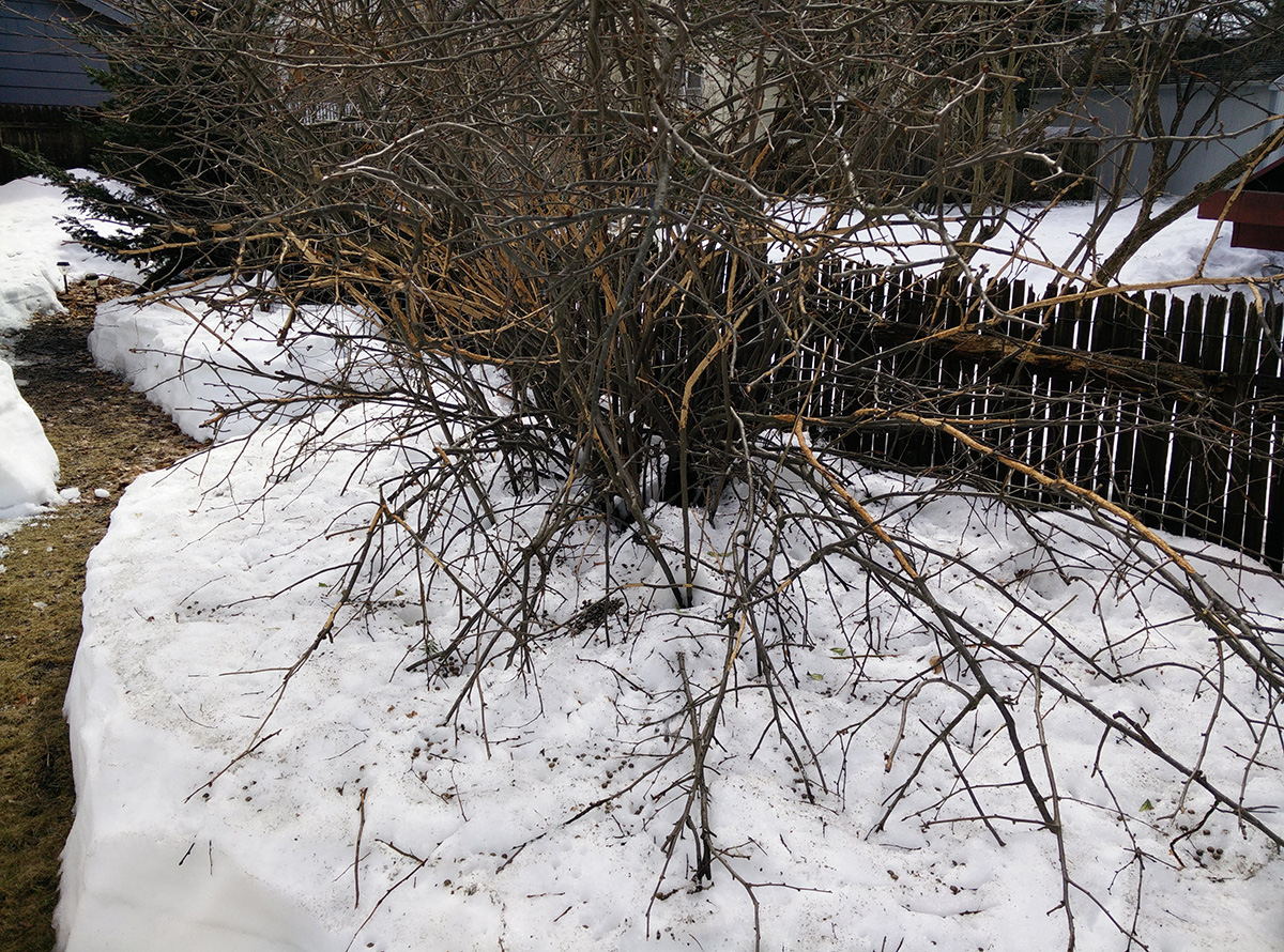 i carved out a new path to the quince bush, which had seen better days, but there doesn't seem to be anymore rabbit damage, despite exposed fresh branches. maybe chewing up the bush was their starvation food; the bush did last through almost the entire winter season without damage, and only in the last few weeks with spring nearly arriving did the gang of hungry rabbits show up. i also removed some snow from the raised beds; i figured the sooner the snow melt off of them, the quicker i can begin planting once the warm weather comes around.