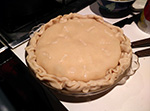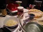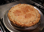the finished pot pie was okay, not as bland as last time. i didn't put tin foil around the edges, the crust never got scorched anyway. there was a gap in one of my crimps and some filling leaked out. the filling was a bit on the runny side, i should've reduced it some more before adding to the pie. but i think fresh pot pies are all like that; only when they become leftovers do they get that thick dense consistency.