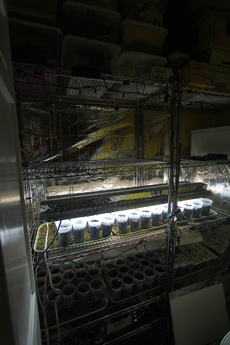 back in cambridge after getting a ride home, i started lowering one of the shelves in the steel racks of the hallway closet, so i could have a third shelf to grow my plants because i've discovered i'm pretty much out of space at this point with just 2 shelves. of course this means having to buy another 4 feet shop light. i used a plank of wood and a hammer to knock the shelf off its plastic securing braces. after i lowered it sufficiently, i retaped the mylar fabric (used to reflect the light back inside the grow closet). while i was doing this, dancing with the stars was on tv. why am i not watching this show? maybe i'm too much of a reality tv snob. but snobbery aside, what's not to like about a show featuring scantily-clad women (and men) shaking it to music? unfortunately the only contestant that was remotely interested (buxom model charlotte mckinney) got voted off the show.