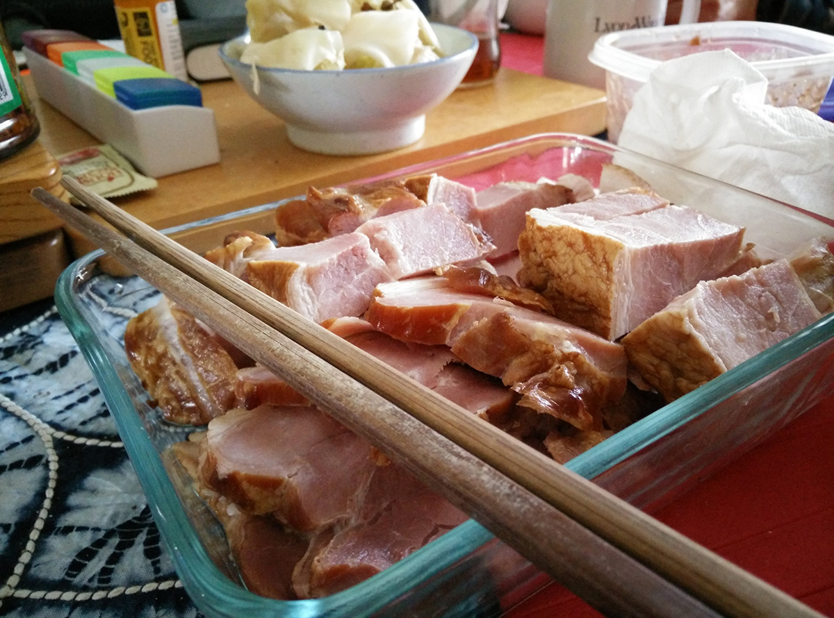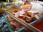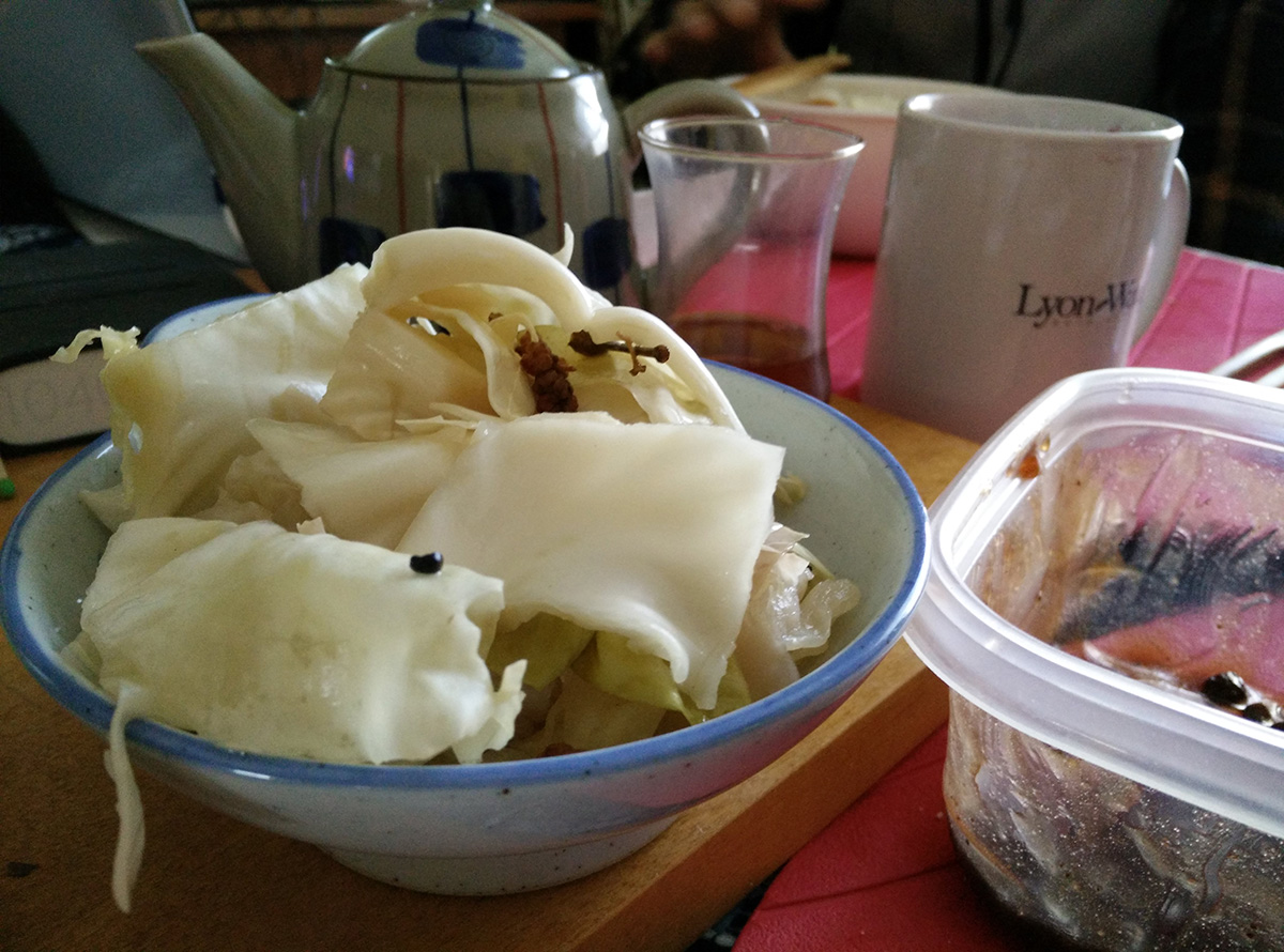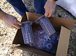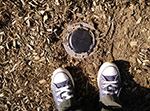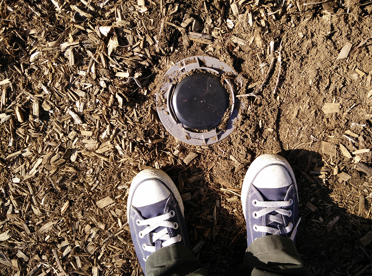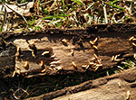 sean was pretty jovial, feeding us anecdotes from his job. winter time is the slowest period, and many people get laid off or they go take pest management classes to beef up on their extermination game. when sean was a young man he worked at weylu's in saugus, and picked up some cantonese while working at that garish chinese-polynesian restaurant. when i pulled up one of the old wooden stakes crawling with termites, he got all excited and took out his phone to get some photos, his first termites of the season. he put down traps1 that can use either wooden monitoring pucks or poisonous baits; since there was already termites, he used the baited pucks instead.