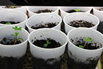 i performed a little indoor garden maintenance today: watered the gravel trays, shuffled some plants around, soaked a few more empty soil pots, did some thinning, and transplanted a few lupines and eggplants. i kept saving extra lupines, looks like i'm going to have a pretty good lupine garden. the eggplants had a germination rate of 100%: each pot had exactly 2 seeds in them. i felt bad thinning them out, but i don't need so many eggplants (i did manage to replant 2 off the thinned seedlings). i still haven't thinned the delphiniums, which are also doing very well. i like to save some more seedlings if i can. provided that the preexisting snapdragons in my parents' backyard have survived the winter, i look forward to a very color flowering season this year. and all of these are perennials, so once they're established, i can look forward to seeing them every year.