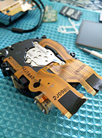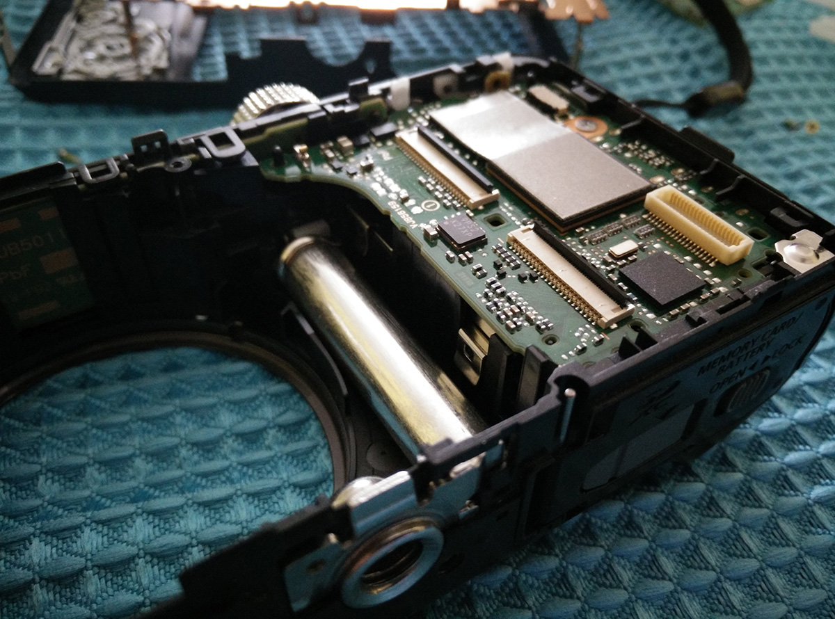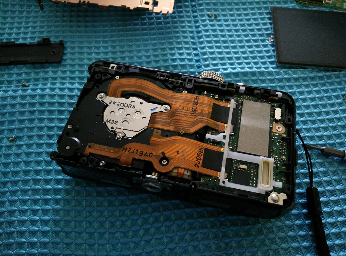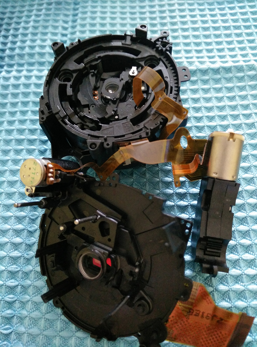 i had some time on my hands so i decided to open up the camera once again, see if i can disassemble the lens housing this time around. taking apart electronics is actually kind of fun, i get to see how it works on the inside. when i opened up the lens housing, it sort of came apart in a jump of curled ribbons. i was afraid to go any further, and it took me a while to figure out how to put the housing back together again.