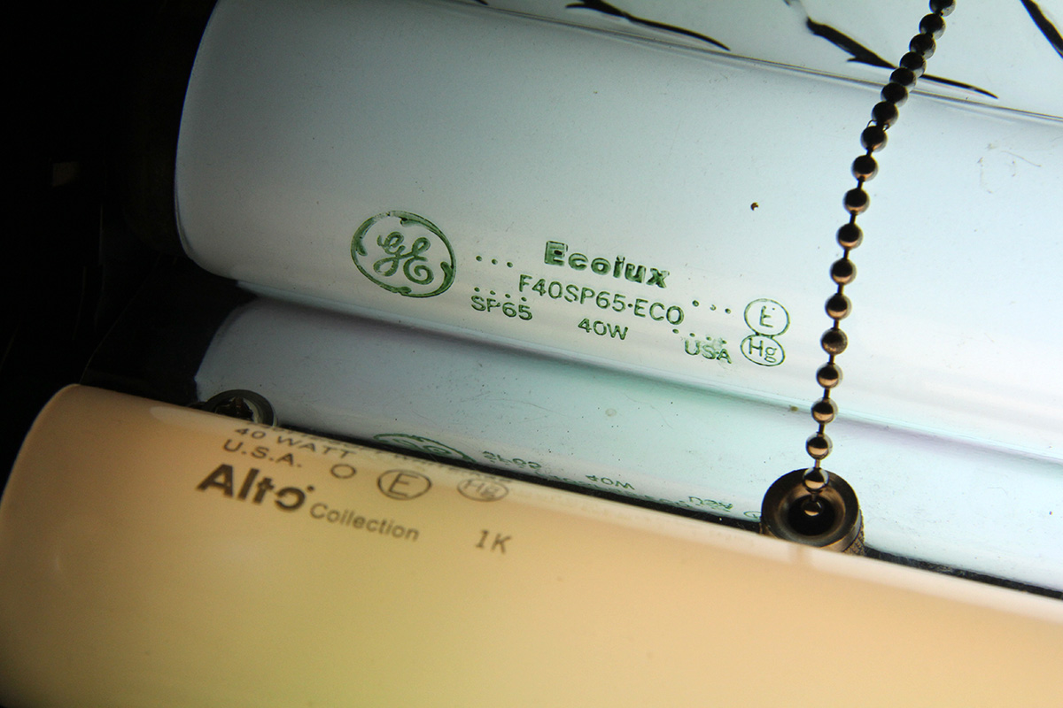 i noticed one of my lupines was getting a bit leggy so i decided to replace one of the fluorescent bulbs. T12 fluorescent tubes are being phased out but i still had 2 brand new spares. i thought they were the cool white variety, but they were actually the warm white type. when it comes to healthy seedlings, i think cool white (blueish) is the way to go, because it promotes leaf growth, compared to the warm white (reddish) which promotes flowering.