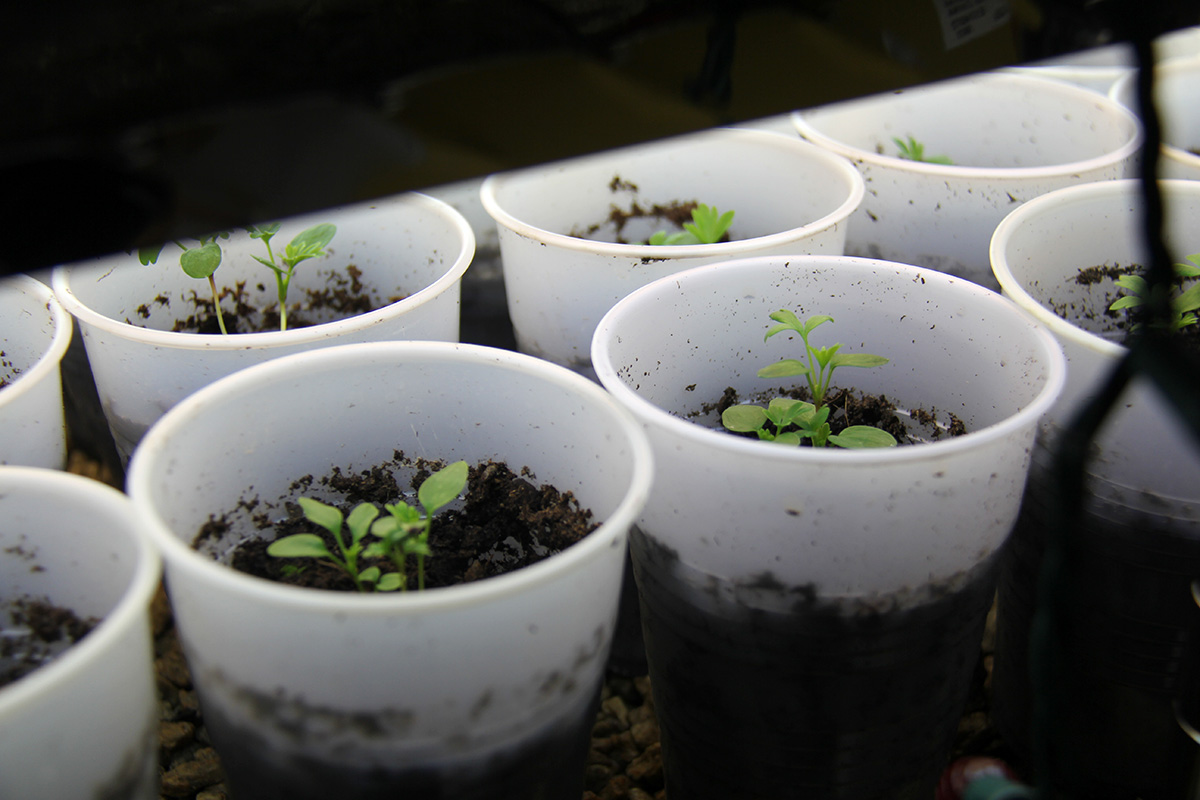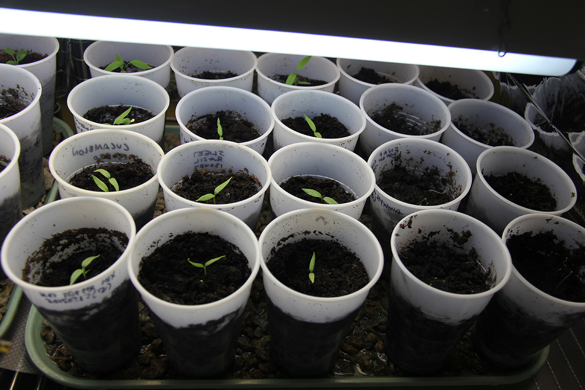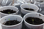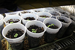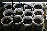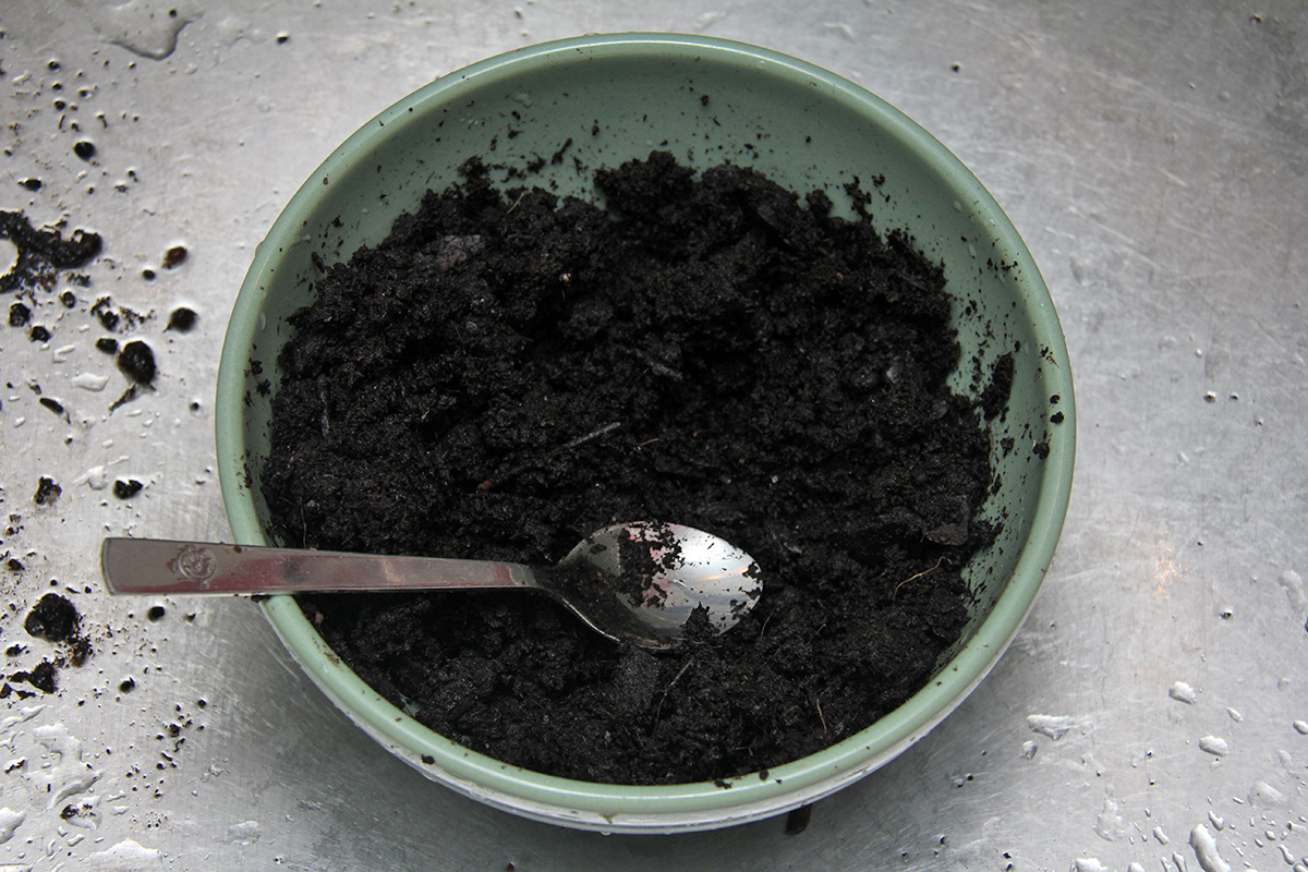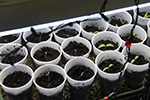 not all seeds germinated, so this morning i was transplanting extra seedlings to empty pots. mostly tomatoes, although thai basil got some transplant action as well. part of the problem was the soil in some pots were much too soggy, so the dirt became very solid. for those pots, i dumped out the wet dirt and mixed it with some drier dirt, then repacked the pots.