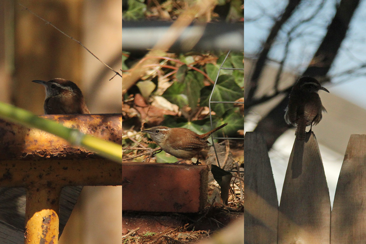 there were a lot of bird activities in the backyard. i heard and spotted a singing male cardinal, a bluejay, a junco, robins, house sparrows, an unknown bird of prey soaring overhead (white wing patch, too small to be a vulture), and a pair of carolina wrens systematically investigate the understory perimeter of the yard.