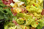 it's my third and last night of salad and with each iteration i keep on adding more ingredients. tonight it was: red-leaf lettuce, scallions, celery, corn, chickpeas, and shredded bacon with an italian dressing. i'd forgotten my days of collegiate salad bars, but i've always liked adding corn to the mix for some sweetness and chewy texture. the bacon sort of got lost in the salad; i only chopped up 2 strips and they weren't crispy anymore (i didn't bother reheating them to try and crisp them up). still, it makes me feel better eating some animal protein instead of just relying on chickpeas (which made me a little gassy later in the evening, thank god nobody was around). i'm trying to think of what other ingredients i can add for the next time i eat salad again. cucumbers might be nice for some crispiness.
