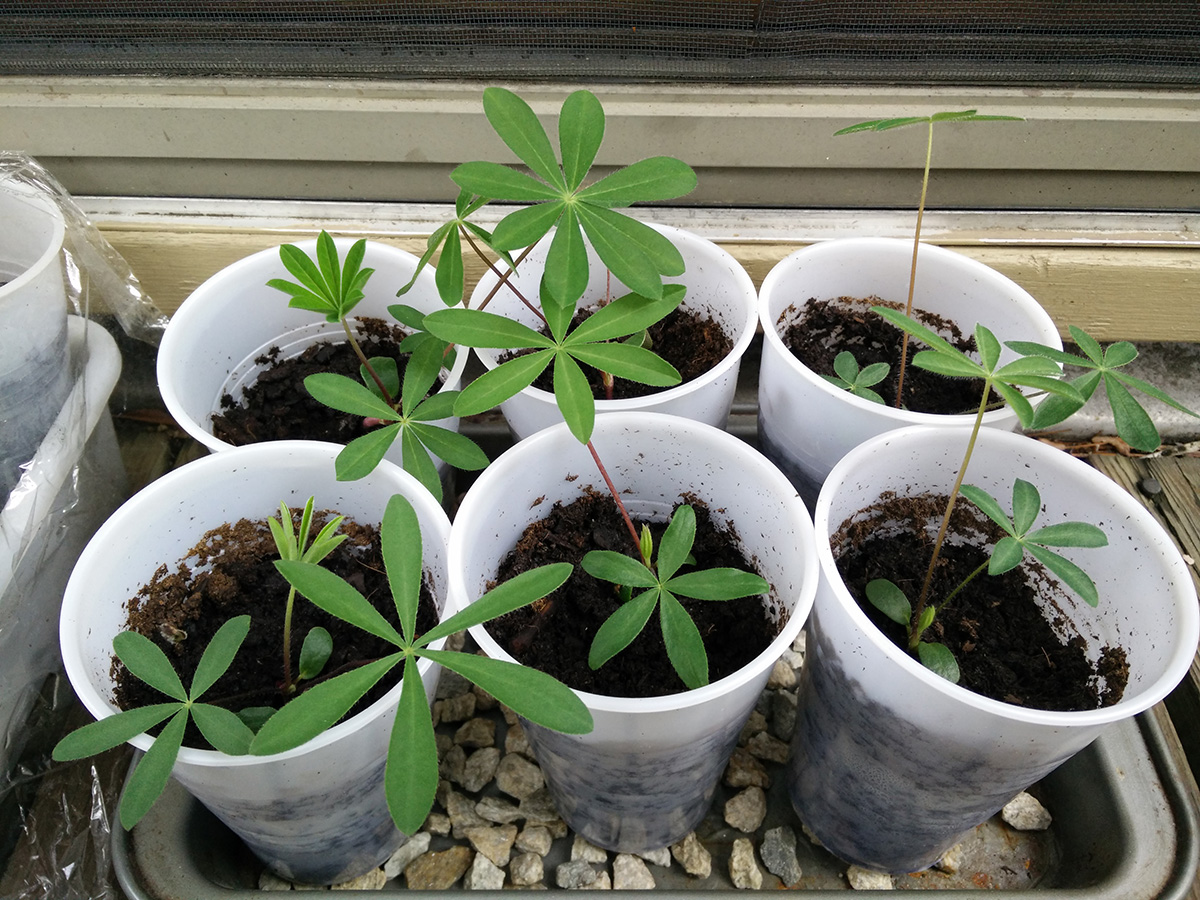 | bottom | 6 lupines 2 delphiniums 8 (9) thai basil 9 eggplants 3 sweet basil 6 cucamelons 12 hot peppers |