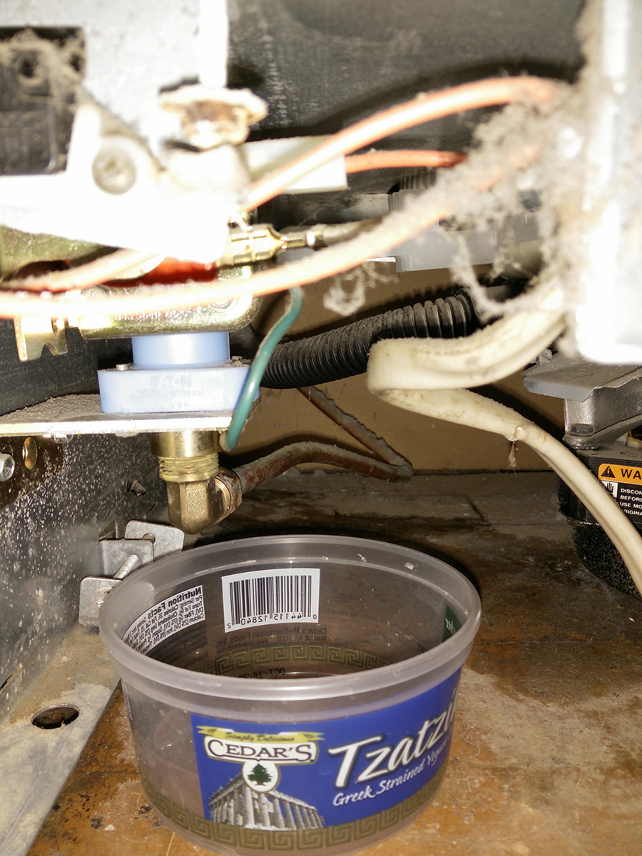 the gap behind the counter they just plugged up with some expanding foam. the one behind the dishwasher seemed more serious. so in my haste to see if i can plug the gap, i tried pulling out the dishwasher. it came out a little bit, but i suddenly remembered it was probably attached to a bunch of cables, so i quietly pushed the machine back. but the damage was already done, and i must've yanked the water intake line because suddenly the machine kept on leaking. i went down to the basement to shut off the water, but the cutoff valves are bad and water still continued to come out. at a certain point it seemed to stop, before i realized it was actually leaking into the basement, which i temporarily caught with a bucket.