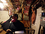 half the team were in the basement sealing the rim joist. it involved spraying it with expanding foam then patch it edge with a rectangular block of fiberglass insulation. their spray guns were long enough that i didn't have to move any of steve's stuff after all. sealing the rim joist first is important because later on when insulation is pumped into the walls, sometimes it's possible for the insulation to spill out from an uninsulated rim joist.
