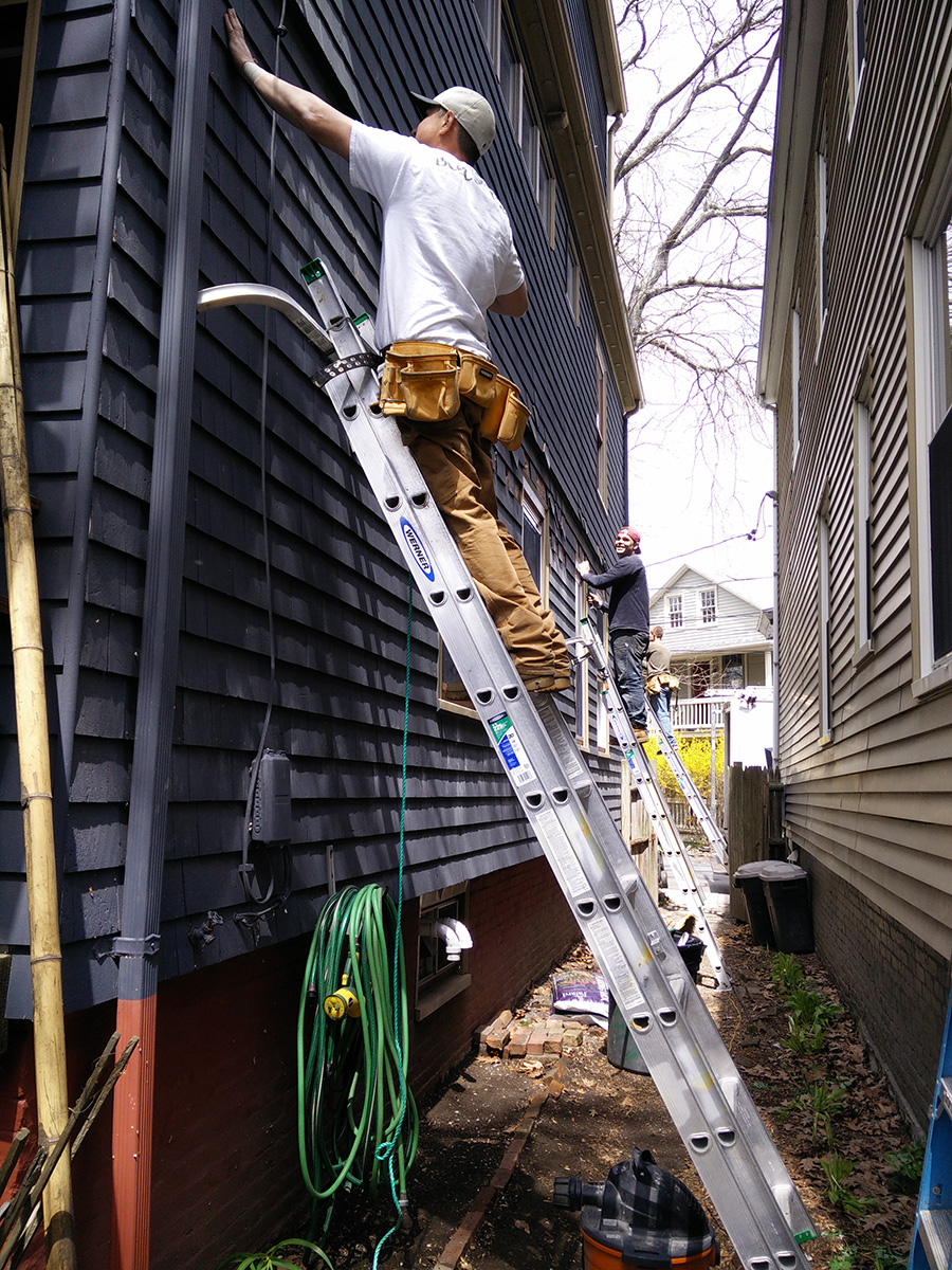 with 6 people the installation was pretty efficient, with contractors simultaneously working on all 4 sides of the house. jim asked me if there was any good places to eat around here, i told him there was a chinese restaurant around the corner, and also o'sullivan burgers. he laughed, because one of the guys in his crew used to date the daughter of the o'sullivan owner. all these guys were also part of a soft ball team, and they had a game today after work.