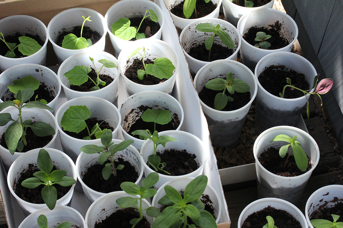 after they left, i went about dismantling the last remnant of my grow closet. with the weather now seemingly in summer mode, there's no reason to continue growing my plants indoors. i packed up all the remaining seedlings in cardboard boxes and turned off the lights. some of the pots had additional tiny seedlings which looked like columbines, so i rescued about 5 of them, putting them into individual pots.