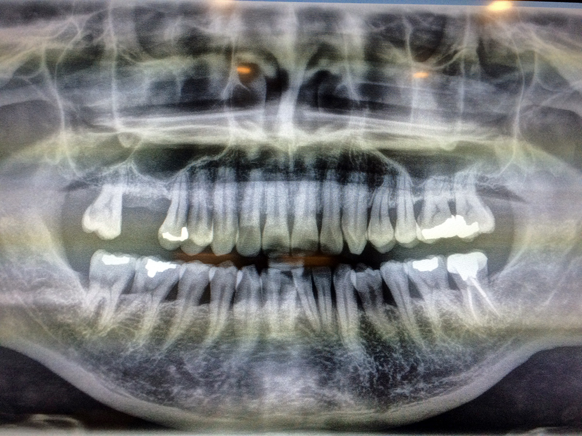 with that i was done, just had to take another x-ray to make sure everything was okay. i sort of stumbled to the panoramic x-ray machine, almost dropping my glasses, and banging my forehead against one of the adjustable head brace prongs.
